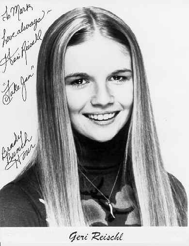 Back in 1976 my sister who was 7 was a big time Brady bunch fan. Every day after school was Mr. Rogers and The Brady Bunch. Then I heard about a new Brady show. But it was from those guys that did the Saturday morning stuff I had loved, Sid and Marty Krofft. I remember seeing it and hearing my sister say something like "Hey that's not Jan". Sure enough there was a different girl playing Jan. And one that my 15 year old teenage boy mentality recognized as a really hot Brady :) My friends agreed in the next few weeks as we caught the show. The "New Jan" was a hit and strange enough a reason for watching an otherwise boring show. Anyway, sometime early in 2001 while surfing through the Sid and Marty Krofft sites I came across the Brady hour page and the complete story of Geri Reischl and her "Fake Jan" status. And it mentioned she would autograph a picture and send it just for the asking. I wrote an email asking if she was really her and would she really send me an autograph. Well quite a while went by when I got a reply saying yes it was really her and yes she would send me an autograph. The photo albums on her site had just gone up and I was looking over the old publicity photos. I had not see that side of the "New Jan" back then. I could see myself as an obsessed teen fan if I had :) Sigh. So I opted for the "Jan Brady" photo. Because that is the way I remember her. Months went by and I had forgotten about it. Then in the beginning of December I got an email from Geri saying sorry for the delay my autograph was in the mail. Wow. So I sent a reply back saying "Thanks you big "fake" you :)" Only on the internet.. Wow. Take a look at this. Thanks for the autograph Geri. If you would like to see her story and maybe get an autograph for yourself then go visit the Official Geri Reischl Page.